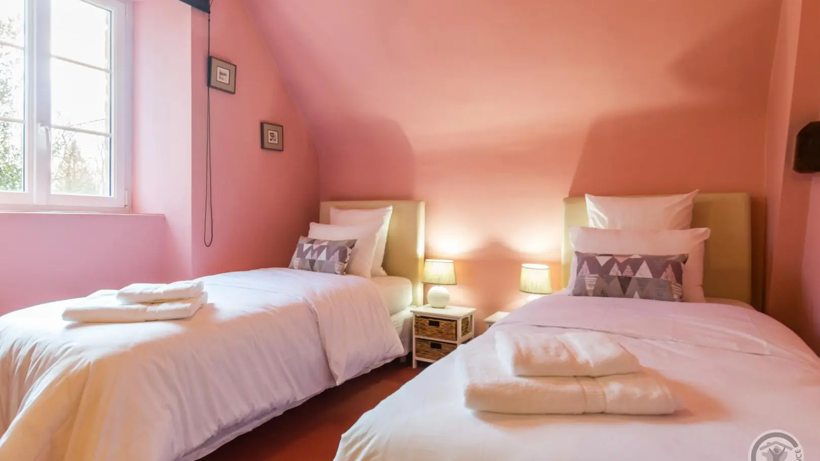 Detached house with different levels. Living room with open-plan kitchen (oven, electric hob, microwave, dishwasher, fridge with freezer), lounge (smart TV, internet, DVD, PS3 console, Bluetooth speaker). Ground floor, Ch 1 (bed 160x200) with private bathroom and toilet. Laundry room (washing machine, tumble dryer) with additional shower room and wc. On 1st floor, bedroom 2 (2 beds 90x200), bedroom 3 (bed 160x200), bathroom (toilet and washbasin), bedroom 4 (bed 160x220), bedroom 5 (2 beds 90x200 and convertible sofa (140X190)) and bathroom. Baby equipment on request (1 wooden bed, 1 folding bed, 2 high chairs). Geothermal central heating included. Bed linen provided. Linen for hire. Cleaning service extra. Deposit: pre-authorization by credit card required. Large private unfenced plot (5000m²). Garden furniture. Barbecue. Deckchairs. Local with table tennis, table soccer, darts, children's playhouse and outdoor games (balls, volleyball, badminton, molkky). Free parking.