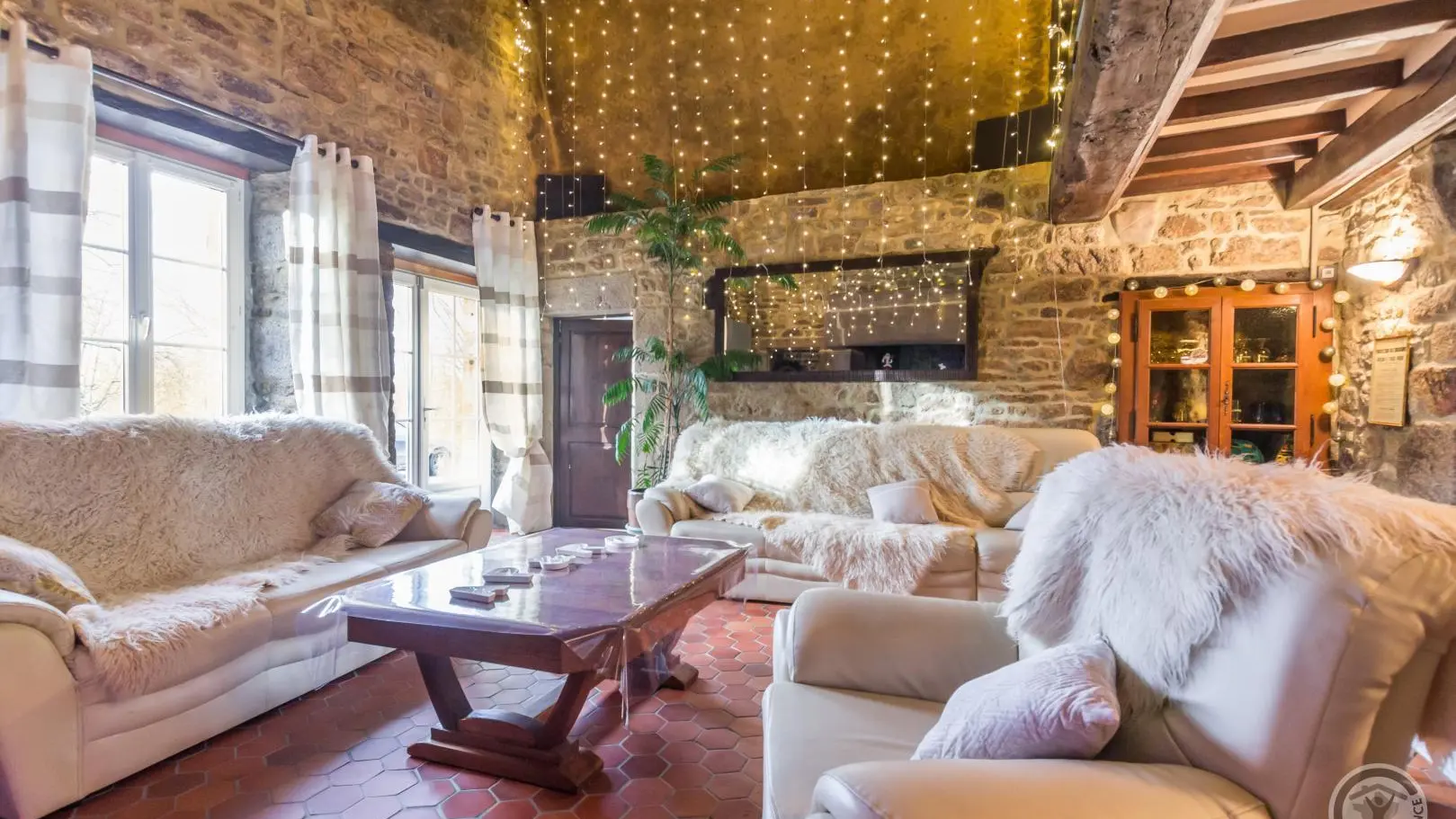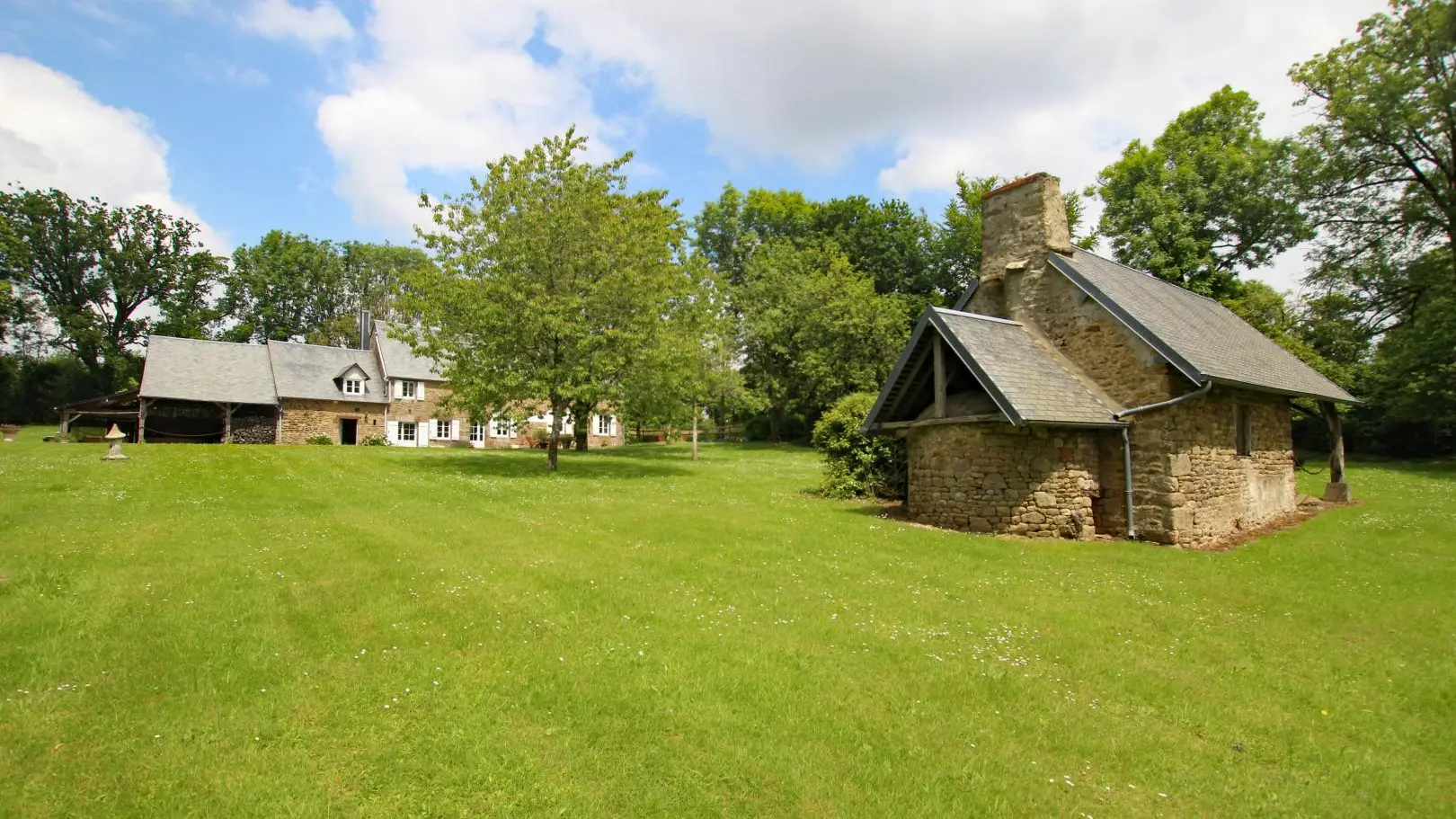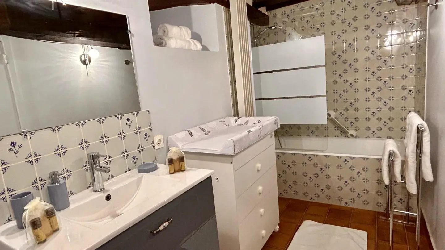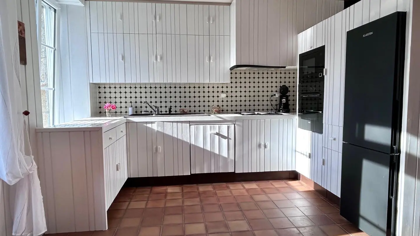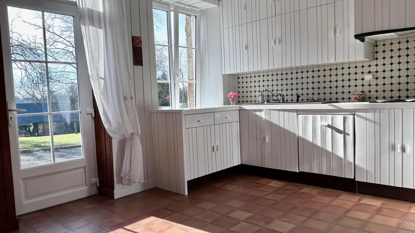 The path leading down to Le Rochelu gradually plunges you into the greenery. Chestnut trees greet you, and your mind wanders off into this unspoilt environment. Caroline warmly welcomes you to this authentic family home, which sleeps up to 12. Everything is perfectly arranged for your comfort and well-being. Families in particular will enjoy happy days here, barely disturbed by birdsong or the whisper of wind in the trees. With a little patience, you'll catch a glimpse of the rich wildlife of our countryside (squirrels, hedgehogs, roe deer...). With its monumental fireplace, the beautiful living room is at the heart of the house and will be the place for your convivial evenings. But when the weather's nice, the old awning and its magnificent granite wine press provide a superb backdrop for aperitifs in the blue hour. An old-fashioned charm floats through the 154m² of this longère, enveloping us in a very comforting atmosphere.